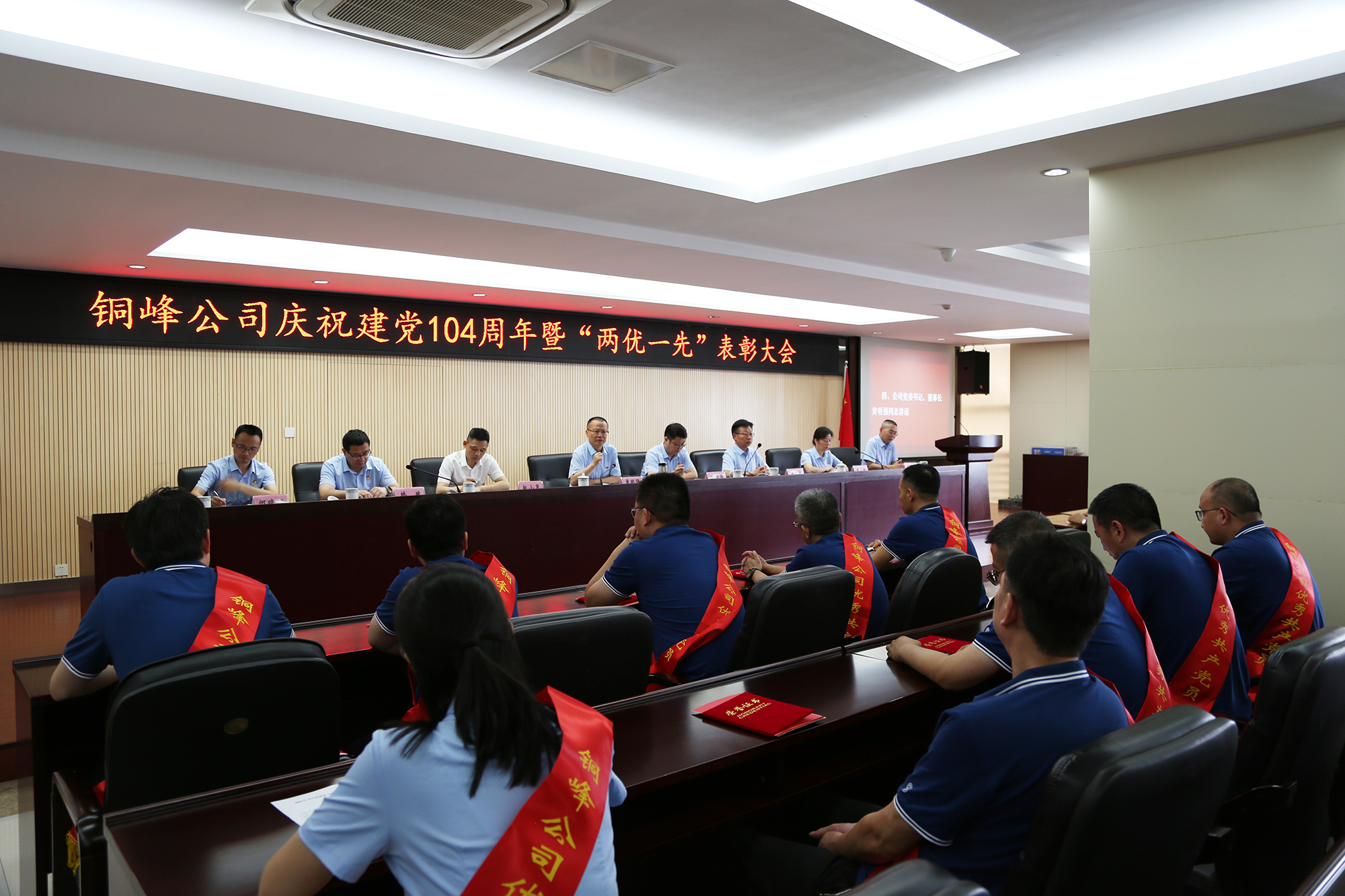 為熱烈慶祝中國共產(chǎn)黨成立104周年,表彰先進(jìn)、樹立榜樣,激勵廣大黨員干部職工在新征程上展現(xiàn)新作為,6月27日下午,公司在辦公大樓二樓職教室隆重召開慶祝建黨104周年暨“兩優(yōu)一先”表彰大會。公司黨委書記、董事長黃明強(qiáng)出席大會并講話,黨委委員、總經(jīng)理鮑俊華宣讀表彰決定,黨委副書記潘世宇主持會議并就貫徹落實(shí)會議精神作出部署。公司黨委領(lǐng)導(dǎo)班子成員和公司級黨員領(lǐng)導(dǎo),紀(jì)委委員,各黨(總)支部書記、委員,“兩優(yōu)一先”表彰對象、黨員代表、新黨員、入黨積極分子代表等參加會議。
